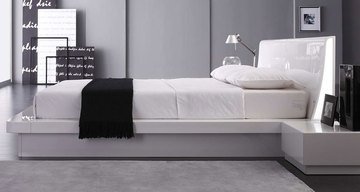 To create this high gloss white lacquer bed with lights, the 4 PC Prestige Modern White Lacquer Bedroom Furniture Set by True Contemporary Bedroom was built to a beautiful modern design and uses the best materials available. The softest white ambience emits from the side of headboard with touch sensing on-off switches are added for extra convenience. Together with the matching bedroom set pieces you will have a stunning ensemble.