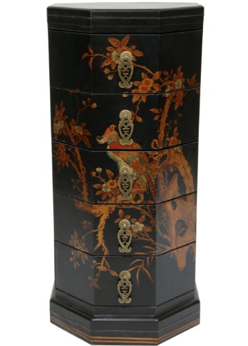 Asian Style Furnishings - 28" Black Lacquer Five Drawer Hexagon Chest Review