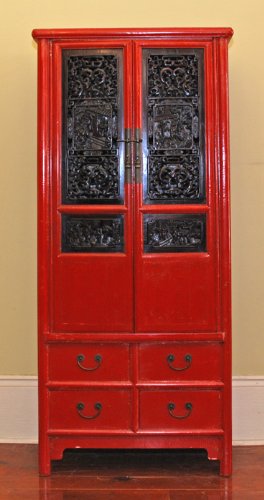 CZY805X-Cabinet with nicely carved doors, Reproduction, China, Northern Elm (Yumu) with Red & Black Review