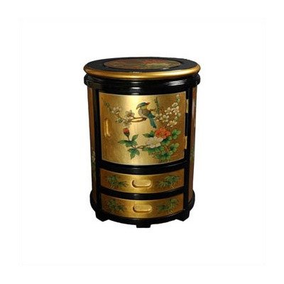 LCQ-JS-BL Color: Black Japanese stool perfect for any home! A beautiful and functional accent which compliments any room. This Japanese stool is hand crafted of elm wood and hand finished in a rich, clear lacquer. The longevity of this family s craft has survived despite social and economic change in the Guangdong region. Their survival is a testament to their commitment to quality. The stool doubles as a decorative stand or circular end table with three compartments. Available in black, red, or gold lacquer. Features: -Japanese decorative storage stool -Handmade -Solid elm wood construction -Hand lacquered finish -Hand painted -1 Door -2 Drawers -Genuine brass hardware -Available in black, red, and gold! -Overall dimensions: 18''H x 13.5''W x 13.5''D