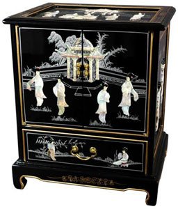 Fine Asian Furniture & Décor - 24" Chinese Black Lacquer End Table w/ Mother of Pearl Ladies Feature